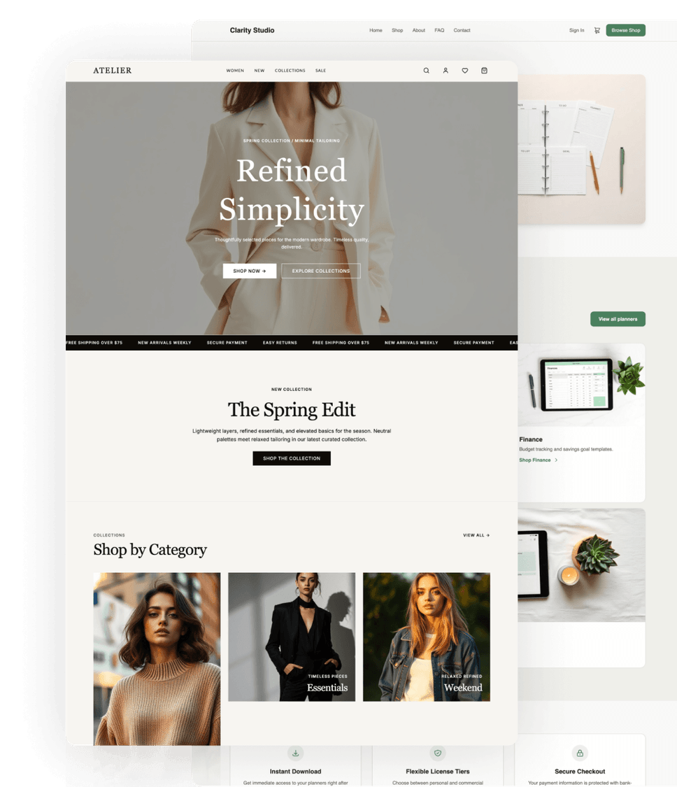 Launch online stores, portfolios, blogs, interactive tools, and web apps with functionality built in from day one.