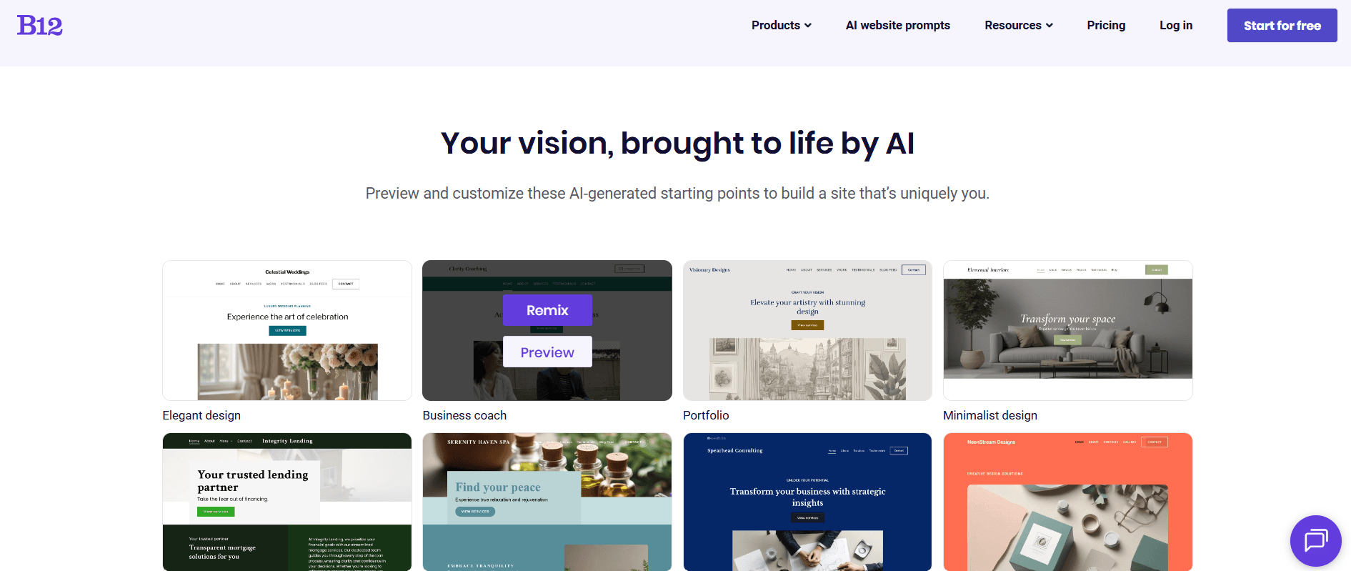 B12 makes it easy to keep your website looking fresh and modern. Its smart AI tools whip up a professional, mobile-friendly site that fits your business in minutes. And with just one click, you can regenerate the look of any page or section — no extra effort needed.