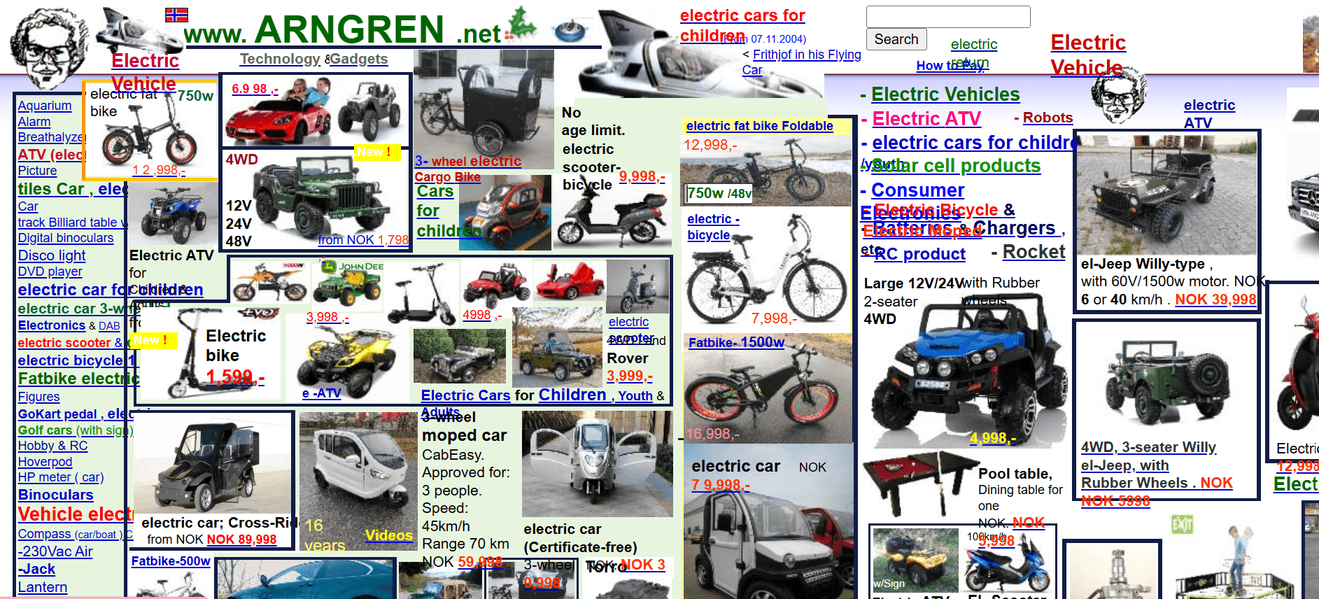 A poorly designed website with cluttered elements, too little white space, and confusing navigation