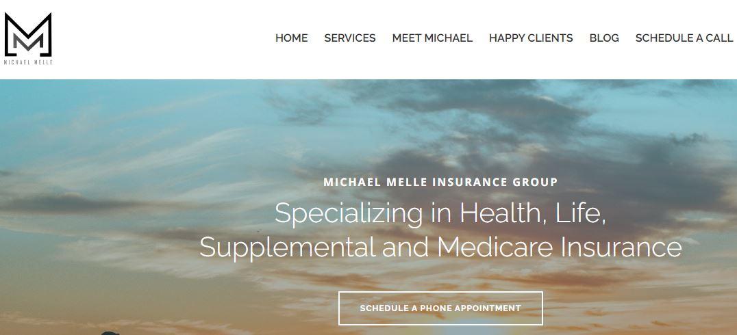 A clean, human-centered agency site that makes use of intuitive navigation, clear coverage categories (Health, Life, Medicare), and a prominent “Schedule a Phone Appointment” CTA. The “Meet Michael” page brings a personal story that builds trust, while a blog and resource pages add educational value.