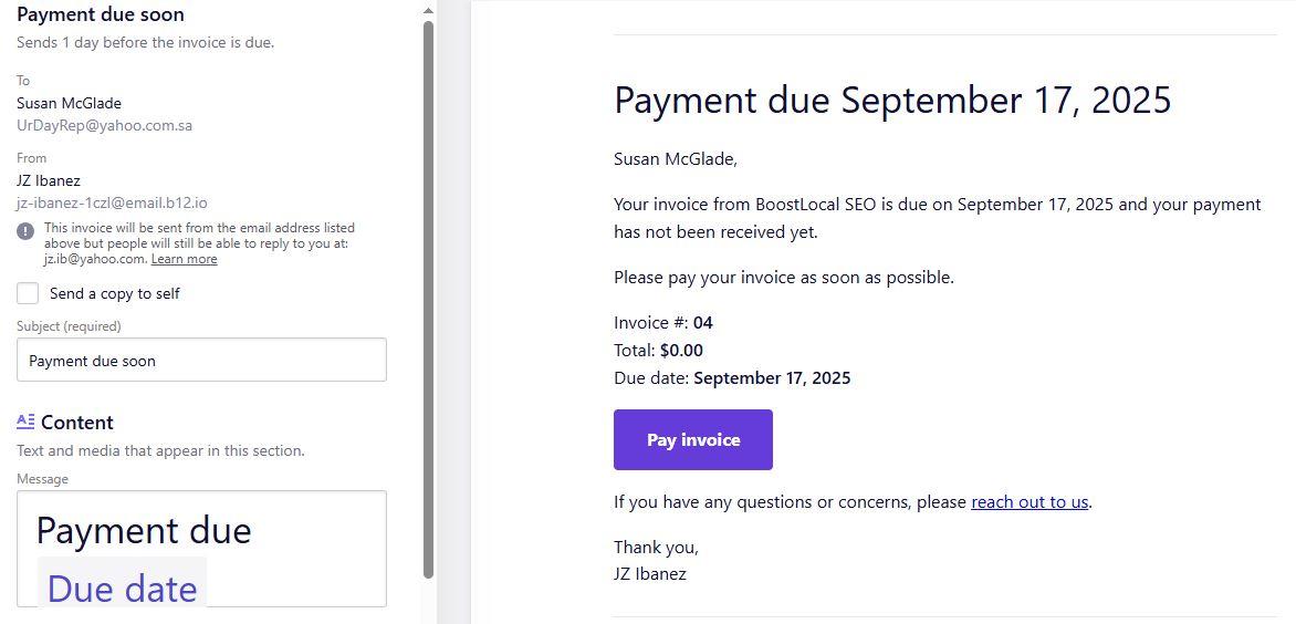 Set expectations upfront to ensure you have a stress-free system. Define deposits, timelines, and any late fees directly in your contracts and invoices. This transparent approach helps you avoid surprises and gives consumers confidence about what they’ll owe and when.