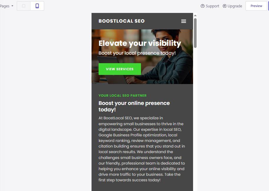 An AI website builder like B12 can manage several time-consuming processes instantly. Some of these tasks include auto-filling business details, creating meta tags and meta descriptions, and making your site mobile-friendly for all mobile devices. With an AI-powered tool, you can focus on your website content and brand voice instead of wrestling with code or tedious settings.