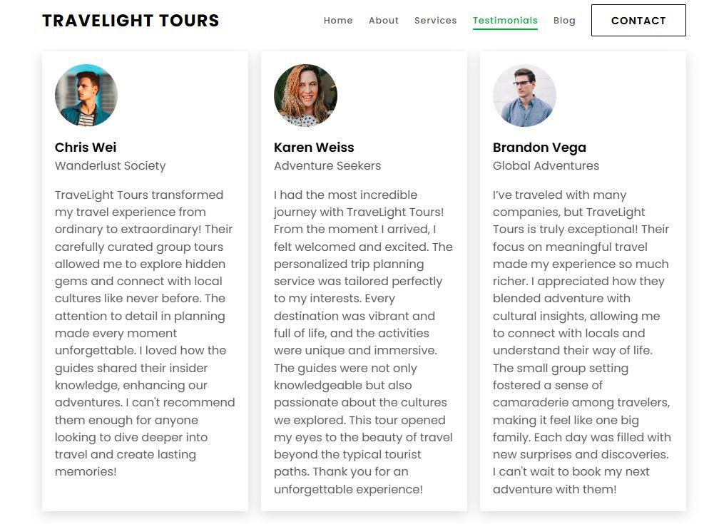 Showcase reviews that highlight specific benefits of your service, not just generic praise. Adding client photos, logos, or case studies makes testimonials more believable and relatable.