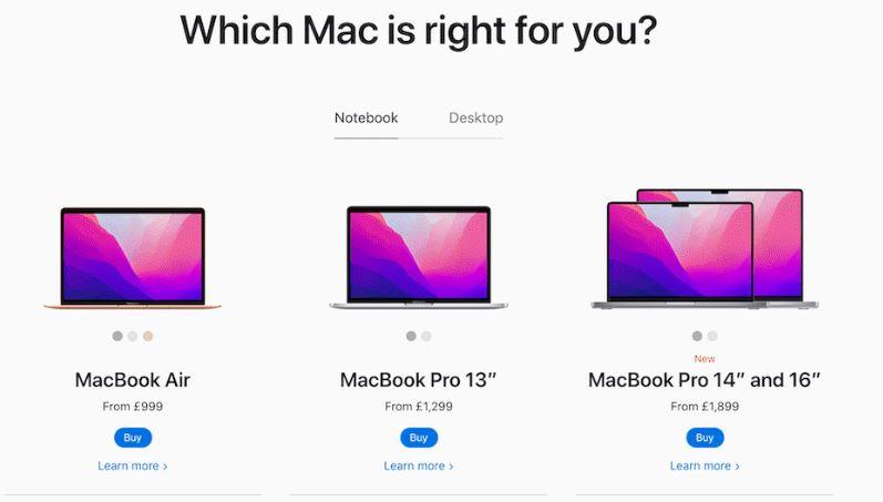 Visuals are trust shortcuts. Use product screenshots, short demos, or a native hero video that shows the experience. A hero visual that matches your headline, like Apple’s MacBook landing page, for instance, reduces bounce and boosts conversions.