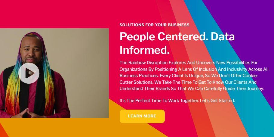 Rainbow Disruption stands out for its expressive, decorative text and subtle animated typography, used to reflect the creator’s bold, experimental style. Its dynamic typographic rhythm brings the brand’s energy to life.